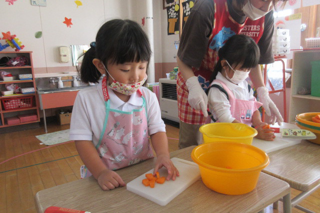 季節の野菜やお魚を味わったりなど、楽しいクッキング。自分で料理をすると苦手なものも美味しくなるようです。
