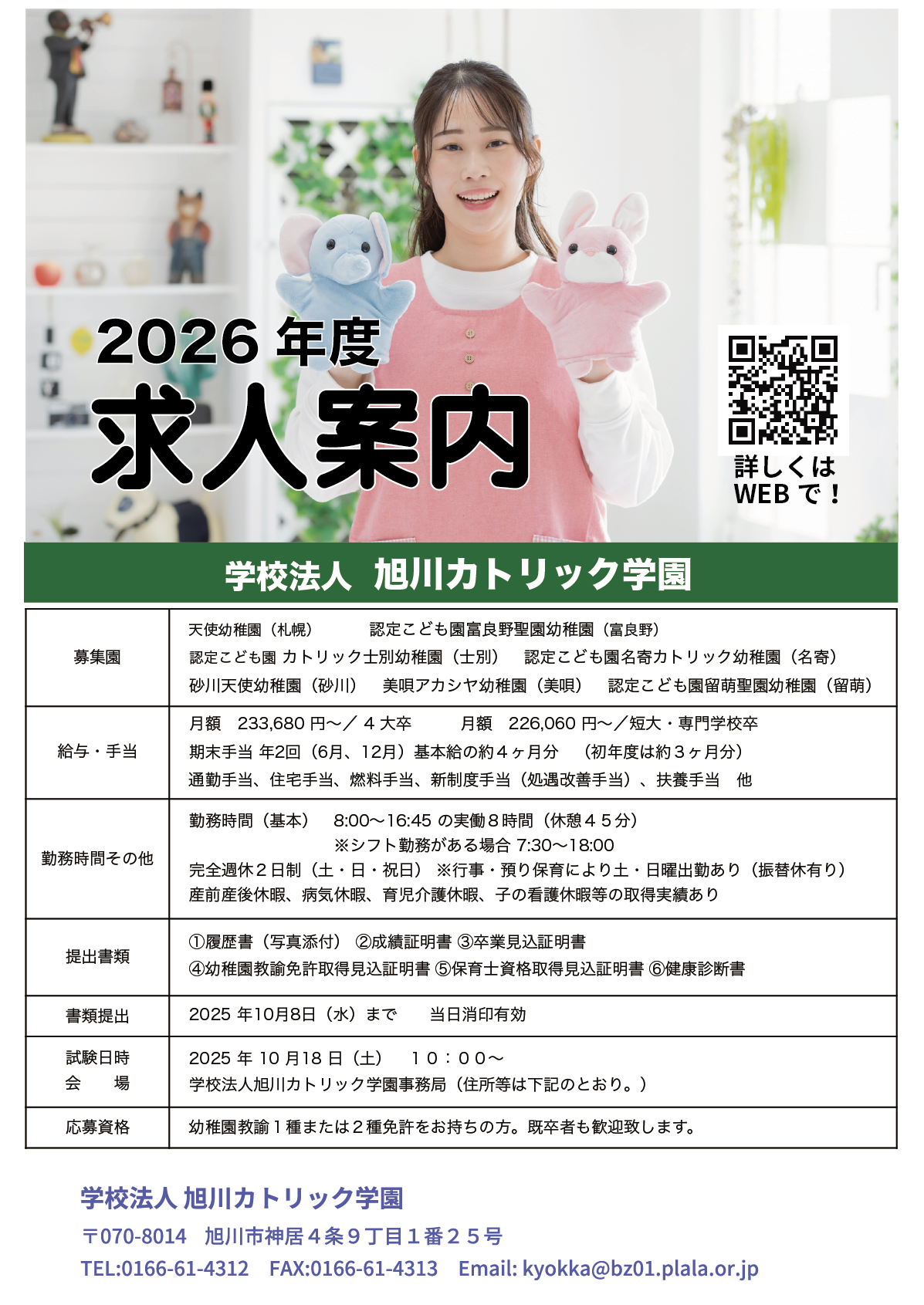 HOME | 求人案内 認定こども園富良野聖園幼稚園 求人案内 求人案内 2026年度採用案内の詳細についてはこちら 2026年度採用案内の詳細についてはこちら! 富良野聖園幼稚園LINE公式アカウントから、チャットで問い合わせいただけます。小さな問い合わせでも、お気軽にお問い合わせ下さい! 富良野聖園幼稚園LINE公式アカウントから、チャットで問い合わせいただけます。 小さな問い合わせでも、お気軽にお問い合わせ下さい!